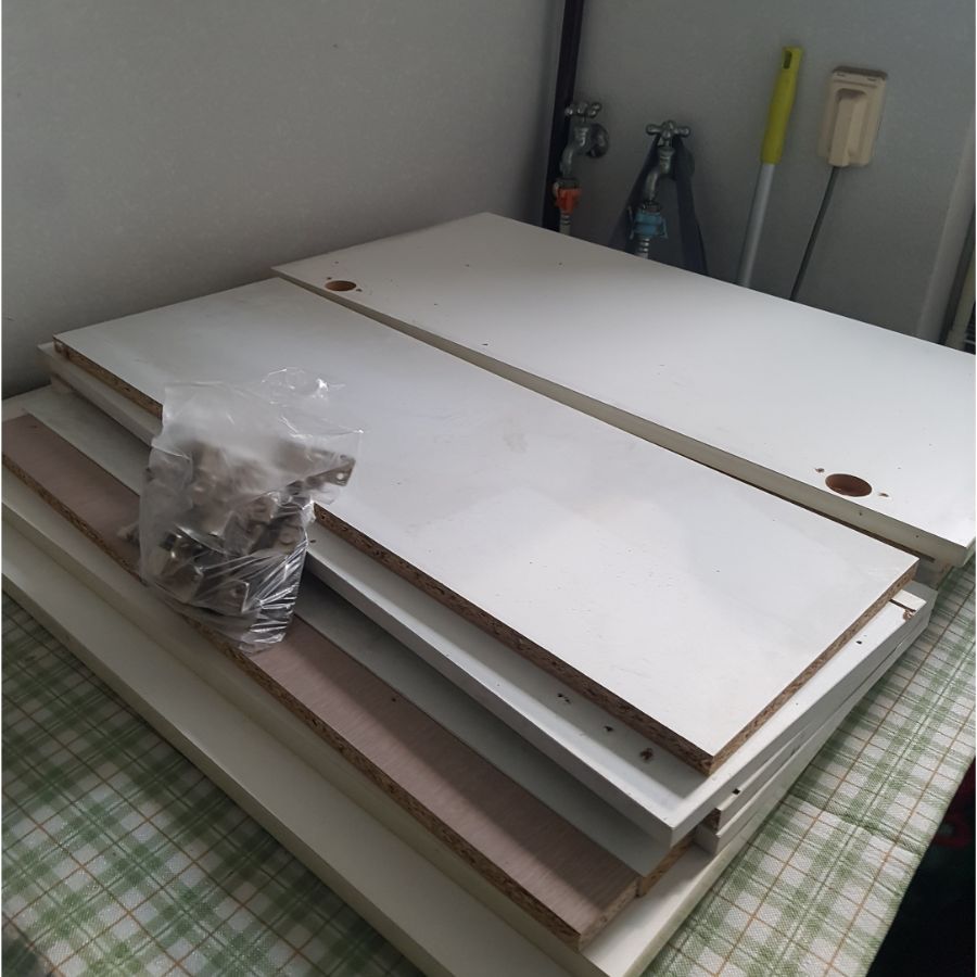 모든 상부장을 철거한 후, 분해된 자재들을 한곳에 정리하여 차곡차곡 모았습니다.