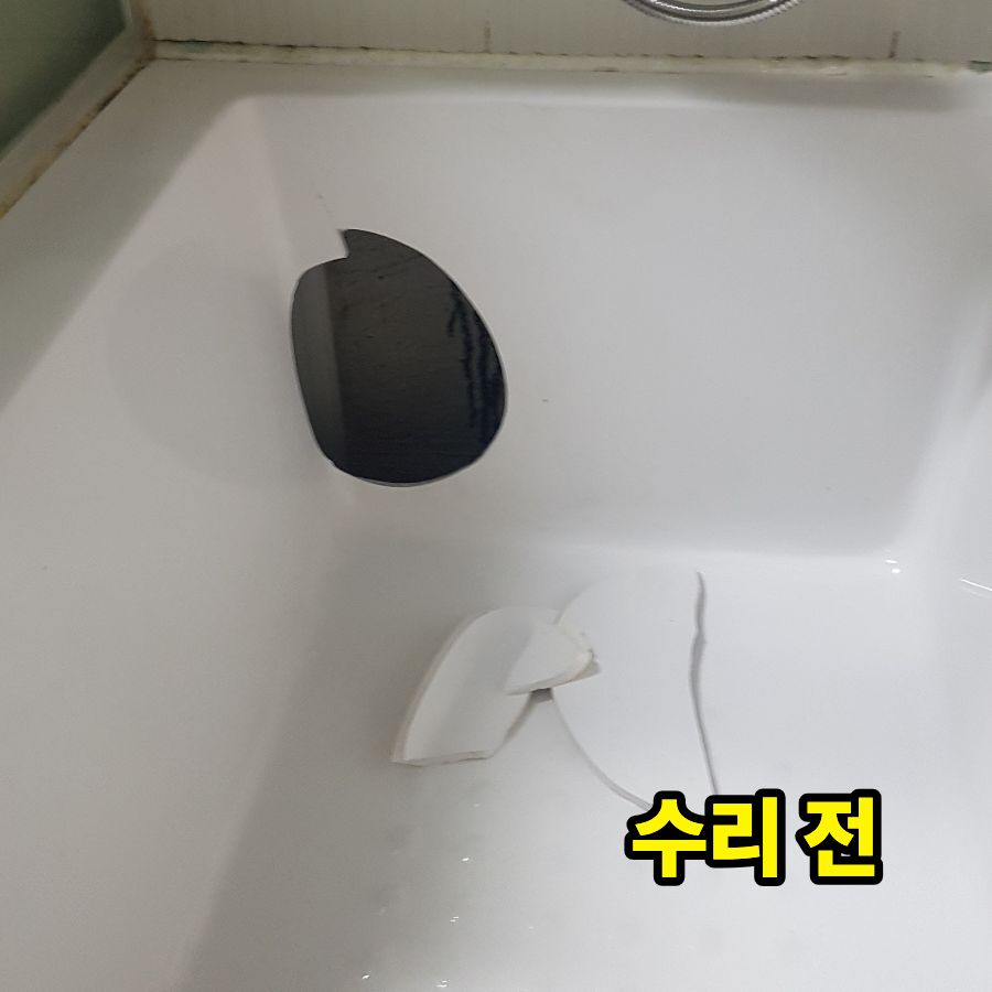 욕조 측면 파손으로 인한 큰 구멍 발생