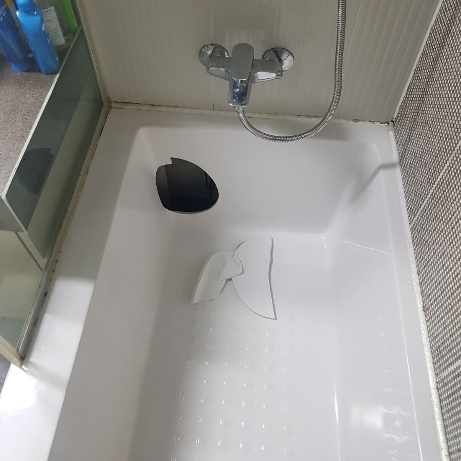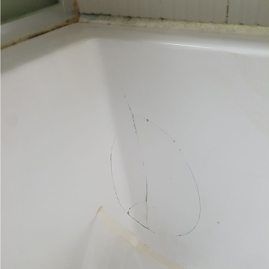 이번 고객님은 욕조 안쪽 측면이 크게 깨지면서 손바닥 크기의 구멍이 발생한 상황이었습니다.